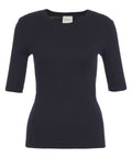 Questa t-shirt Closed è un capo basic versatile per ogni guardaroba. Realizzata in morbido misto cotone, offre un elevato comfort e una sensazione piacevole al tatto. Presenta uno scollo rotondo classico e maniche a tre quarti femminili. Il taglio aderente esalta la silhouette.