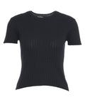 Questa elegante t-shirt 'Maria' di Colorush colpisce per la sua raffinata struttura a costine e il taglio aderente. Realizzata con un pregiato mix di cotone, seta e lana, offre un comfort piacevole e un look accattivante. Lo scollo rotondo classico e le maniche corte completano perfettamente il design versatile per outfit quotidiani di stile.