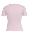Questa elegante t-shirt 'Maria' di Colorush colpisce per la sua raffinata struttura a costine e il taglio aderente. Realizzata con un pregiato mix di cotone, seta e lana, offre un comfort piacevole e un look accattivante. Lo scollo rotondo classico e le maniche corte completano perfettamente il design versatile per outfit quotidiani di stile.