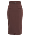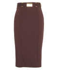 Questa elegante gonna midi di Elisabetta Franchi colpisce per la sua silhouette aderente e la cintura integrata con dettaglio logo color oro. Il suo taglio slanciato e la lunghezza midi le conferiscono un fascino classico, ideale per look versatili. Il design enfatizza il punto vita e offre un'estetica sofisticata. Made in Italy.