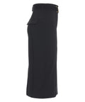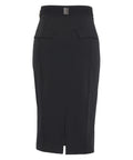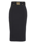 Questa elegante gonna midi di Elisabetta Franchi colpisce per la sua silhouette aderente e la cintura integrata con dettaglio logo color oro. Il suo taglio slanciato e la lunghezza midi le conferiscono un fascino classico, ideale per look versatili. Il design enfatizza il punto vita e offre un'estetica sofisticata. Made in Italy.