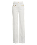 Questi lussuosi jeans Elisabetta Franchi presentano un design elegante realizzato in cotone di alta qualità. Sono caratterizzati da un moderno taglio svasato e da una vestibilità a vita alta che esalta la figura. Dettagli a catena accattivanti sulle tasche applicate aggiungono un tocco glamour ai pantaloni. Made in Italy, questi jeans garantiscono qualità e stile eccellenti.