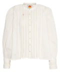 Questa squisita blusa di Farmrio si distingue per il suo design raffinato. Presenta un elegante collo alla coreana e una chiusura a bottoni su tutta la lunghezza. Le maniche lunghe sono dotate di polsini abbottonati e presentano sottili dettagli a manica a sbuffo. Delicati ricami e finiture in filigrana sul davanti conferiscono a questo capo un'estetica speciale e lussuosa, ideale per ensemble sofisticati.