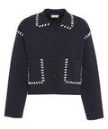Questa giacca chic di Liu Jo White presenta una vestibilità corta. È disegnata con un colletto classico e un'abbottonatura. Le impunture decorative a contrasto adornano il colletto, l'abbottonatura e le tasche applicate, aggiungendo un tocco speciale al design. Un capo versatile per abbinamenti eleganti.