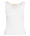 Questo elegante top di Michael Kors si presenta con un design senza tempo. È caratterizzato dalla sua struttura a coste e da un classico scollo rotondo. Una sottile scritta del logo sulla nuca sottolinea l'identità del marchio. La vestibilità slim garantisce una silhouette lusinghiera.