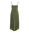 L'abito maxi 'Atelia' si distingue per l'elegante silhouette a trapezio e il design estivo. Realizzato in un pregiato misto cotone, assicura una sensazione di leggerezza. Le pieghe arricciate sulla scollatura e lo scollo a v valorizzano la figura, mentre la delicata applicazione di paillettes sull'orlo completa il look di lusso.