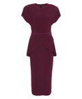 Questo elegante abito midi si distingue per la sua silhouette accattivante. Presenta una classica scollatura rotonda e maniche corte che ne sottolineano il carattere senza tempo. Un dettaglio drappeggiato in vita con cintura decorativa integrata crea una figura lusinghiera. La cerniera nascosta sul retro garantisce un look impeccabile.