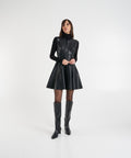 Questo elegante abito mini di Norma Kamali è realizzato in similpelle di alta qualità. Il design senza maniche presenta un corpetto aderente con cuciture sagomate e una gonna ampia e svasata. La classica scollatura rotonda e la lunghezza mini sottolineano il look femminile e moderno. Un capo essenziale e versatile, che può essere abbinato sia in modo chic che audace.