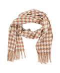 Questa sciarpa di alta qualità presenta un classico motivo pied de poule ed è un accessorio versatile per ogni guardaroba. Il modello si distingue per la sua texture morbida e le eleganti estremità sfrangiate. Offre un calore confortevole e un tocco di stile per le giornate più fresche, ideale per valorizzare qualsiasi outfit.
