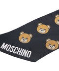 Questo lussuoso foulard di Moschino presenta una stampa unica con motivi ricorrenti di orsetti. Il materiale leggero e fluido garantisce un comfort piacevole e molteplici opzioni di styling. Come accessorio elegante, questa sciarpa Made in Italy aggiunge un tocco giocoso ma sofisticato a qualsiasi outfit.