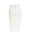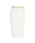 Questa elegante gonna midi di Elisabetta Franchi presenta una lavorazione a maglia strutturata. Il taglio aderente esalta la silhouette, mentre l'applicazione della cintura a catena color oro aggiunge un tocco lussuoso. Il design è un'aggiunta di stile per outfit sofisticati. Made in Italy.