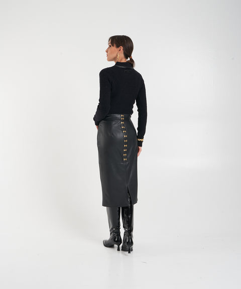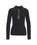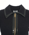 Questa polo in maglia Elisabetta Franchi affascina con la sua superficie testurizzata e una silhouette aderente. Un elegante colletto polo e la cerniera color oro aggiungono accenti moderni. La patta lungo la cerniera e il colletto sono realizzati in un lucido vinile, conferendo un tocco raffinato al design.