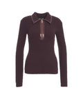 Questa polo in maglia Elisabetta Franchi affascina con la sua superficie testurizzata e una silhouette aderente. Un elegante colletto polo e la cerniera color oro aggiungono accenti moderni. La patta lungo la cerniera e il colletto sono realizzati in un lucido vinile, conferendo un tocco raffinato al design.
