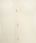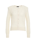 Questo elegante cardigan Liu Jo presenta uno scollo rotondo e un'abbottonatura completa. I bottoni decorativi lucidi aggiungono accenti speciali e conferiscono al design un tocco lussuoso. La trama a maglia fine e traforata e le spalle leggermente strutturate creano una texture sofisticata, rendendo questo cardigan un capo versatile per diverse occasioni.