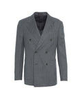 Questo elegante completo 'Nuvola' di The Gigi presenta una vestibilità senza tempo. Il blazer doppiopetto con revers a specchio si abbina perfettamente ai pantaloni coordinati. Questo completo incarna l'artigianato di lusso e la sartoria italiana. Made in Italy, offre un'estetica sofisticata per l'uomo moderno.