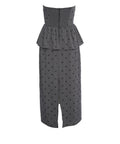 L'elegante abito maxi 'Amilie' incarna una raffinatezza senza tempo. Presenta una silhouette senza spalline con un corpetto finemente drappeggiato e un lusinghiero peplum in vita. Delicate applicazioni decorano l'intero design, conferendo all'abito un fascino lussuoso, ideale per occasioni sofisticate.