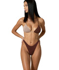 Questo bikini F**K si presenta in un design elegante. Il top a triangolo con allacciatura al collo crea una silhouette accattivante. Lo slip abbinato è caratterizzato da uno sgambatura alta che allunga visivamente le gambe. Ideale per momenti di lusso in spiaggia o in piscina.