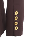 Questo elegante blazer in crêpe di Elisabetta Franchi convince con il suo taglio sartoriale e i bottoni color oro. Il design lussuoso è completato da revers a specchio e tasche decorative con patta. Made in Italy, questo blazer incarna eleganza senza tempo e alta sartorialità. Un capo versatile essenziale per outfit sofisticati.
