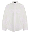 Questa esclusiva blusa in puro cotone si distingue per i raffinati ricami floreali che donano un tocco femminile al design. Il classico colletto alla coreana e l'abbottonatura frontale sottolineano la silhouette senza tempo. Maniche lunghe con polsini bottonati e un fondo arrotondato completano l'estetica di lusso.
