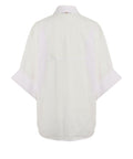 Questa elegante blusa in puro cotone si distingue per il suo design intramontabile e una silhouette moderna dal taglio boxy. La vistosa chiusura frontale con bottoni decorativi color oro conferisce al modello un tocco di lusso. Le maniche ampie con risvolto assicurano un look rilassato ma sofisticato, ideale per completare outfit ricercati.