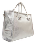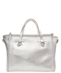 Questa elegante borsa a mano in pelle martellata incarna eleganza senza tempo e artigianalità di alta qualità. È dotata di due robusti manici e di una tracolla rimovibile e regolabile per opzioni di trasporto versatili. Dettagli discreti a nodo e cuciture decorative visibili aggiungono un accento raffinato al design. Made in Italy, è un accessorio elegante per ogni occasione.