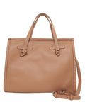 Questa elegante borsa a mano in pelle martellata incarna eleganza senza tempo e artigianalità di alta qualità. È dotata di due robusti manici e di una tracolla rimovibile e regolabile per opzioni di trasporto versatili. Dettagli discreti a nodo e cuciture decorative visibili aggiungono un accento raffinato al design. Made in Italy, è un accessorio elegante per ogni occasione.