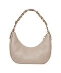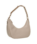 Questa moderna borsa a mano Liu Jo, realizzata in ecopelle di alta qualità, si distingue per la sua elegante forma a mezzaluna. Una distintiva tracolla a catena e dettagli metallici dorati lucidi le conferiscono un tocco lussuoso. La pratica chiusura con cerniera garantisce sicurezza, mentre il discreto logo impresso frontalmente completa con stile il design. È un accessorio versatile per tutti i giorni.