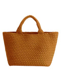 Questa elegante borsa a mano si distingue per il moderno design intrecciato. Realizzata in neoprene, offre ampio spazio per tutti i tuoi oggetti essenziali. Il modello è caratterizzato da una forma pratica e da manici robusti, perfetti per un utilizzo quotidiano. Un accessorio versatile e raffinato, ideale per completare qualsiasi look.