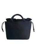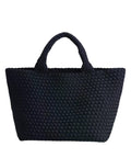 Questa elegante borsa a mano si distingue per il moderno design intrecciato. Realizzata in neoprene, offre ampio spazio per tutti i tuoi oggetti essenziali. Il modello è caratterizzato da una forma pratica e da manici robusti, perfetti per un utilizzo quotidiano. Un accessorio versatile e raffinato, ideale per completare qualsiasi look.