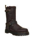 Questi robusti stivali Dr. Martens sono realizzati in pelle liscia di alta qualità. Presentano sorprendenti chiusure con fibbie e dettagli a cinturino che conferiscono al design un aspetto caratteristico. L'iconica suola platform profilata garantisce comfort e uno stile distintivo, completata dalle tipiche cuciture decorative gialle e dal passante con logo sul gambale.