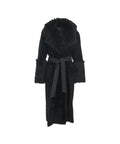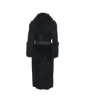 Questo lussuoso cappotto in pelliccia affascina con il suo design voluminoso e la morbida sensazione al tatto. Presenta un generoso collo in pelliccia, maniche voluminose con polsini abbinati e un'elegante cintura in vita che accentua la silhouette. Questo capo esclusivo è perfetto per la stagione fredda.