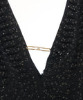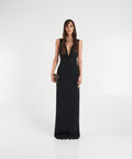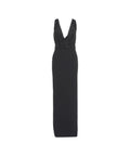 Questo elegante abito lungo di Elisabetta Franchi si distingue per la silhouette a tutta lunghezza e uno scollo a V profondo. Il corpetto è riccamente decorato con applicazioni di paillettes, che donano una lucentezza glamour. La gonna fluida esalta l'aspetto femminile. Made in Italy, questo design incarna l'artigianato di lusso e l'eleganza senza tempo.