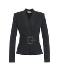 Questo elegante blazer di Elisabetta Franchi affascina con il suo design sartoriale e il raffinato scollo a V. Una cintura in vita integrata con una fibbia distintiva accentua la silhouette e conferisce alla giacca un tocco moderno. Perfetto per un'apparizione di stile, combina elementi classici con un'eleganza contemporanea.