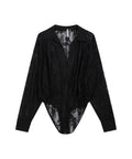 Questo elegante body in stile 'Boyfriend' si distingue per il suo design semitrasparente con un delicato motivo floreale. Presenta un classico colletto a camicia e maniche lunghe, che conferiscono al capo un tocco casual. Il taglio combina l'ampiezza rilassata di una camicia 'Boyfriend' con la pratica vestibilità di un body. Un capo versatile per ensemble di stile.