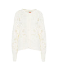 Questo lussuoso cardigan di Farmrio colpisce per il suo motivo traforato unico, che aggiunge un tocco femminile ed elegante. Realizzato in pregiato tessuto a maglia, offre un comfort elevato e una texture accattivante. Lo scollo rotondo e l'abbottonatura frontale completa sottolineano il design classico. Un capo versatile per outfit eleganti.