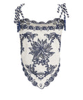 Questo esclusivo top di Farmrio colpisce per la sua pregiata lavorazione in puro cotone. Una stampa floreale artistica è completata da ricami delicati e moderni cut-out. L'orlo smerlato femminile e le chiusure a fiocco regolabili sulle spalle conferiscono al design un tocco estivo e lussuoso.