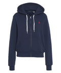 Questa moderna felpa con cappuccio di Polo Ralph Lauren è realizzata in un confortevole misto cotone. Presenta una cerniera a tutta lunghezza, un pratico cappuccio con coulisse e polsini a costine. La classica tasca a marsupio e il caratteristico logo del marchio sul petto completano il design, offrendo uno stile casual per l'uso quotidiano.