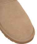 Queste comode slipper 'Classic Mini' di UGG sono realizzate in morbida pelle scamosciata e offrono il massimo comfort grazie alla calda fodera in montone. Il gambale basso e la suola profilata garantiscono una calzata facile e una presa sicura. Queste iconiche mule combinano uno stile casual con una lussuosa comodità e sono perfette per l'uso quotidiano.