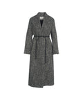 Questo cappotto di alta qualità di Otto d'ame si presenta in una lussuosa texture melange e accarezza elegantemente la silhouette. Il design con collo a scialle e la cintura in vita regolabile consentono opzioni di styling versatili ed enfatizzano la forma femminile. La vestibilità ampia offre un elevato comfort e un'estetica sofisticata. Made in Italy.