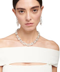 Questa elegante collana 'Cecile' di Federica Tosi affascina con il suo design distintivo a catena. Made in Italy, presenta una sofisticata interazione di maglie rettangolari e ovali, artisticamente intrecciate. Questo gioiello di alta qualità aggiunge un tocco di lusso a qualsiasi outfit.