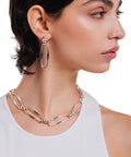L'elegante collana 'Sylvie' di Federica Tosi affascina con il suo design unico a catena. Le maglie allungate e leggermente ritorte creano una texture accattivante e un aspetto moderno. Questo accessorio versatile è un'aggiunta perfetta a qualsiasi look, dal casual al formale. Made in Italy, testimonia l'artigianato di alta qualità.