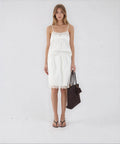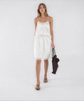Questa elegante gonna midi 'Eugene' di Herskind colpisce per la sua silhouette senza tempo e la lavorazione di alta qualità. Realizzato in puro cotone, il modello offre un comfort premium e una struttura raffinata. Un elastico in vita garantisce una vestibilità ottimale, mentre il delicato orlo rifinito in pizzo aggiunge accenti femminili. Un essenziale versatile per i guardaroba più sofisticati.