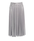 Questa esclusiva gonna midi si distingue per la sua silhouette fluida e le sottili pieghe a plissé che donano un aspetto dinamico a ogni movimento. Il design è caratterizzato da un riflesso elegante, che conferisce al capo un’aura lussuosa. Grazie alla vita elastica, il modello offre una vestibilità perfetta e il massimo comfort per occasioni sofisticate.