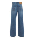 Questi jeans di Jacob Cohen si distinguono per il taglio moderno a gamba larga. Realizzati in misto cotone di alta qualità, offrono il massimo comfort e una silhouette elegante. Il design classico a cinque tasche e la vita alta li rendono un capo essenziale e versatile per look casual raffinati.