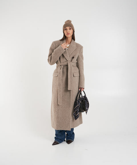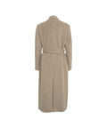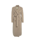 Questo elegante cappotto si presenta in un classico stile doppiopetto ed è accentuato da una cintura in vita abbinata che modella la silhouette. Rever distintivi e tasche a patta applicate sottolineano il design sofisticato. Questo modello unisce un'estetica lussuosa a una maestria artigianale superiore, Made in Italy.