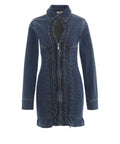 Questo esclusivo abito mini, realizzato in un pregiato misto cotone, unisce un design femminile ad accenti moderni. Raffinati cut-out e un'audace allacciatura definiscono il davanti, mentre la zip integrale sottolinea il carattere contemporaneo dello stile denim. Maniche lunghe con polsini abbottonati e un delicato orlo a balze completano l'estetica di lusso.
