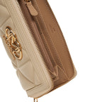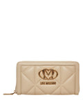 Questo elegante portafoglio Love Moschino affascina con la sua superficie trapuntata e il distintivo dettaglio logo color oro. È dotato di una pratica chiusura con cerniera perimetrale che mantiene al sicuro i vostri oggetti di valore. All'interno, offre ampio spazio con numerosi scomparti per carte, scomparti per documenti e una tasca portamonete con cerniera, rendendolo un accessorio indispensabile. Un lussuoso compagno per l'uso quotidiano.