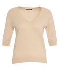 La lussuosa maglia 'Koda' di Colorush affascina con la sua pregiata miscela di cotone, seta e cashmere. Si presenta con un elegante scollo a V e comode maniche a tre quarti. La fine qualità della maglia e la sensazione morbida al tatto garantiscono un piacevole comfort. Un capo versatile che unisce perfettamente eleganza e comodità.