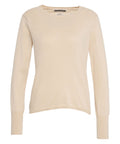 Questo maglione, realizzato con una miscela di cotone, seta e lana di alta qualità, è presentato come il modello 'Clio'. È caratterizzato da un classico scollo rotondo e da polsini e orlo a costine. Un capo versatile ed elegante per guardaroba sofisticati.
