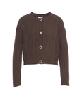Questo elegante cardigan di Liu Jo White presenta un classico motivo a trecce. Un dettaglio speciale sono i bottoni gioiello scintillanti, che aggiungono un tocco lussuoso al design. Il cardigan con scollo rotondo e maniche lunghe è un'aggiunta versatile per outfit eleganti.